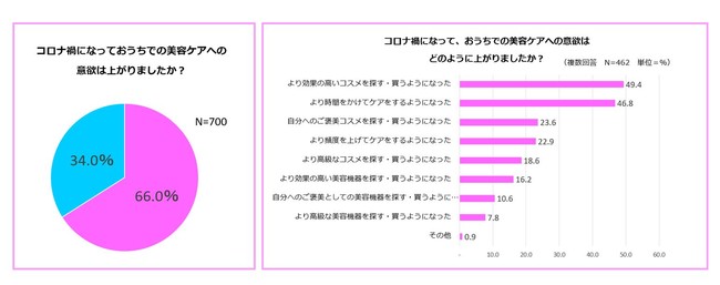 具体的に意欲が上がった点に関しては、そのうちの半数が「より効果の高いコスメを探す・買うようになった」(49.4%)と回答していました。