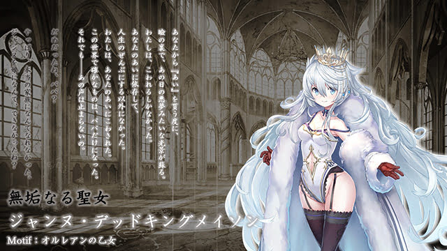 世界最高の魔力を持つ聖女。幼い精神に成熟した体のギャップと、パパ(プレイヤー)への強い依存心という背徳的な魅力を持つ。ジャンヌ・ダルクの魂を持つミナシゴ。