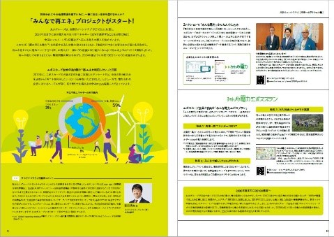 お客さまと一緒にCO₂削減に取り組むプロジェクトなど、未来に向けたアクションについてご紹介しています。また、社会活動家の学生2名とのダイアローグなど、将来世代のしあわせな未来を守るために私たちができることを模索します。