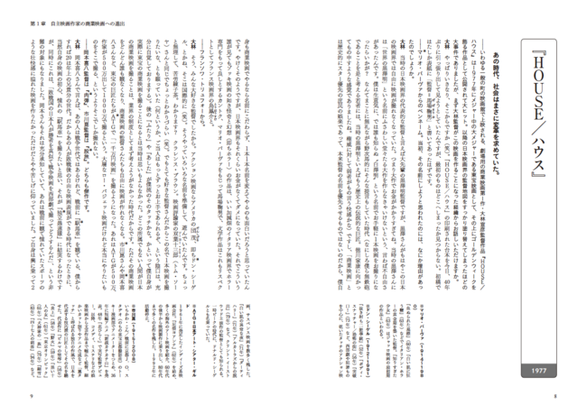 さらには、自ら作品の外輪を語る「インターミッション」や、ゆかりの著名人による「私の好きな大林映画」、詳細なフィルモグラフィも収録。